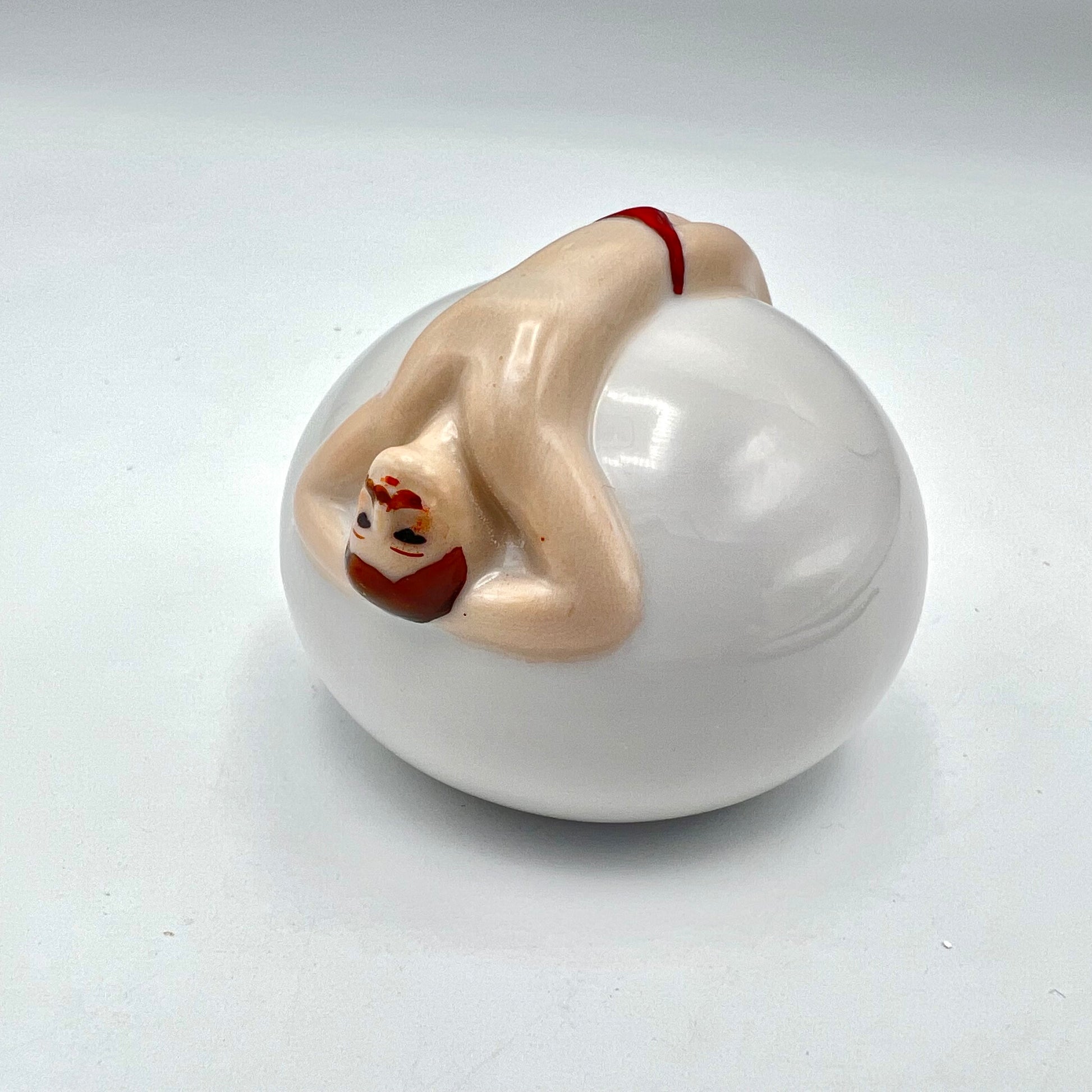 This unique paperweight is created out of what we think is porcelain. Extremely rare and one of a kind. Artist is unknown. Free of cracks and scratches.