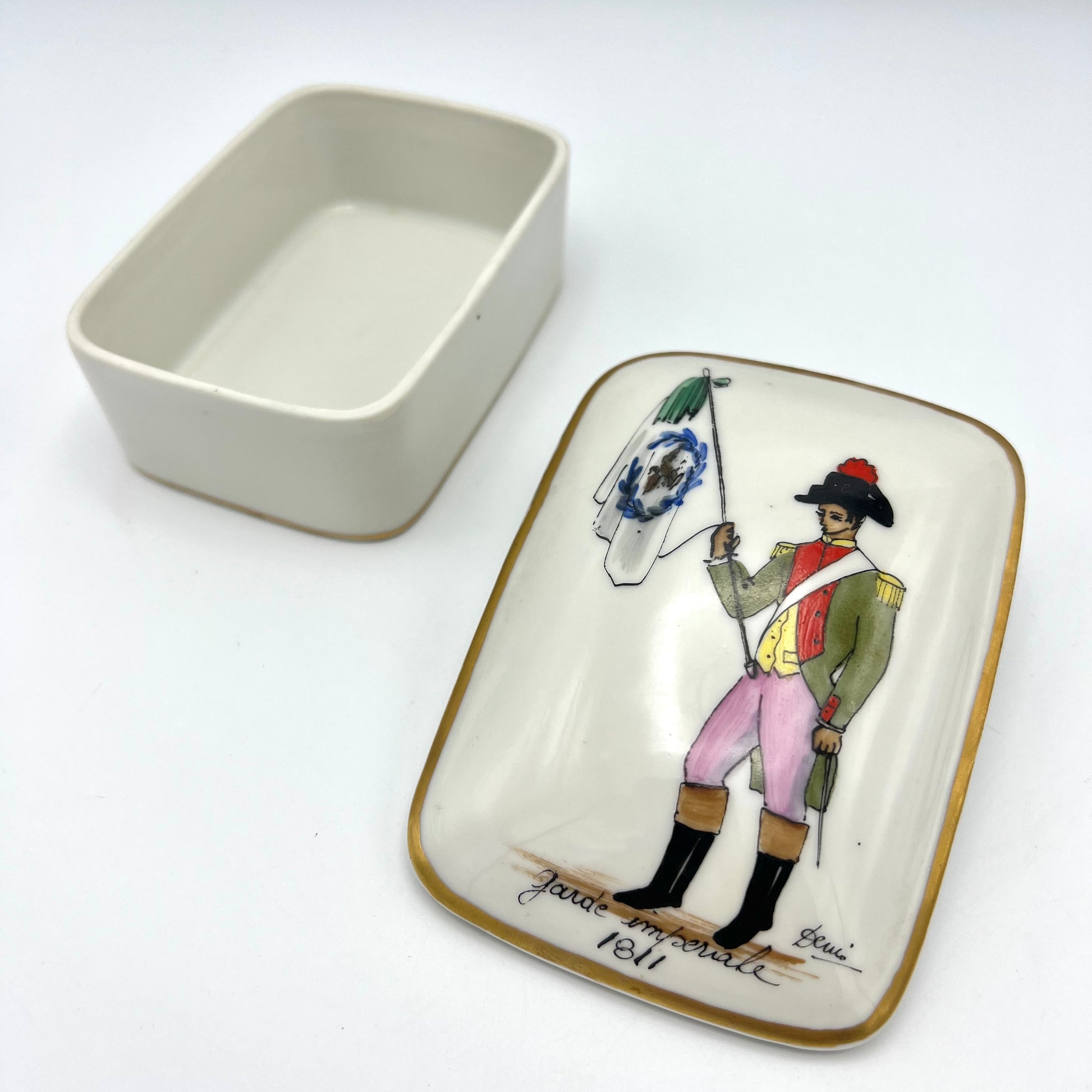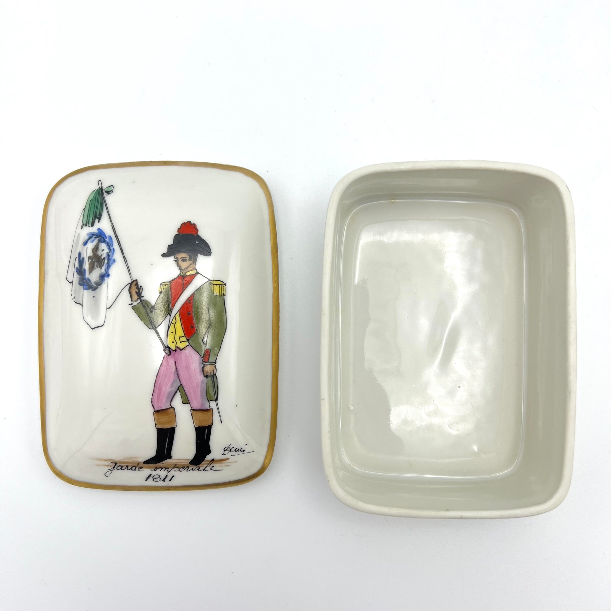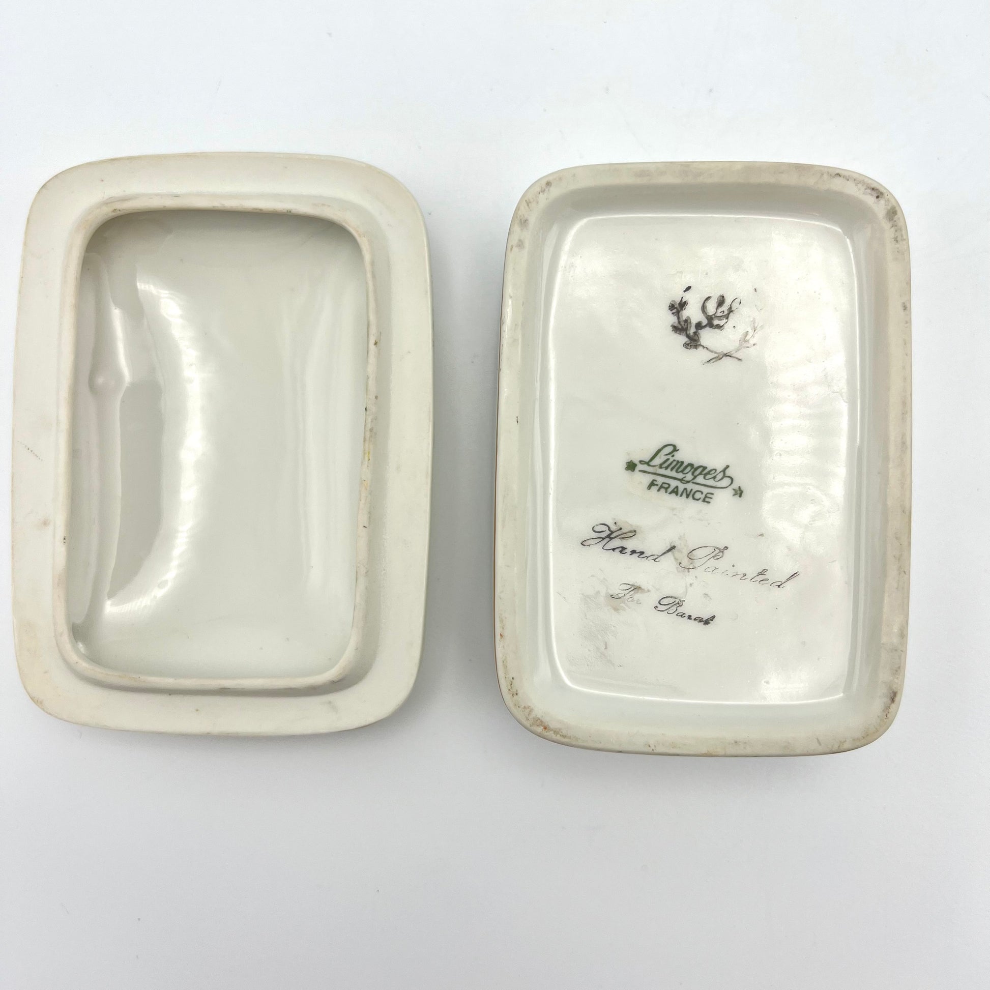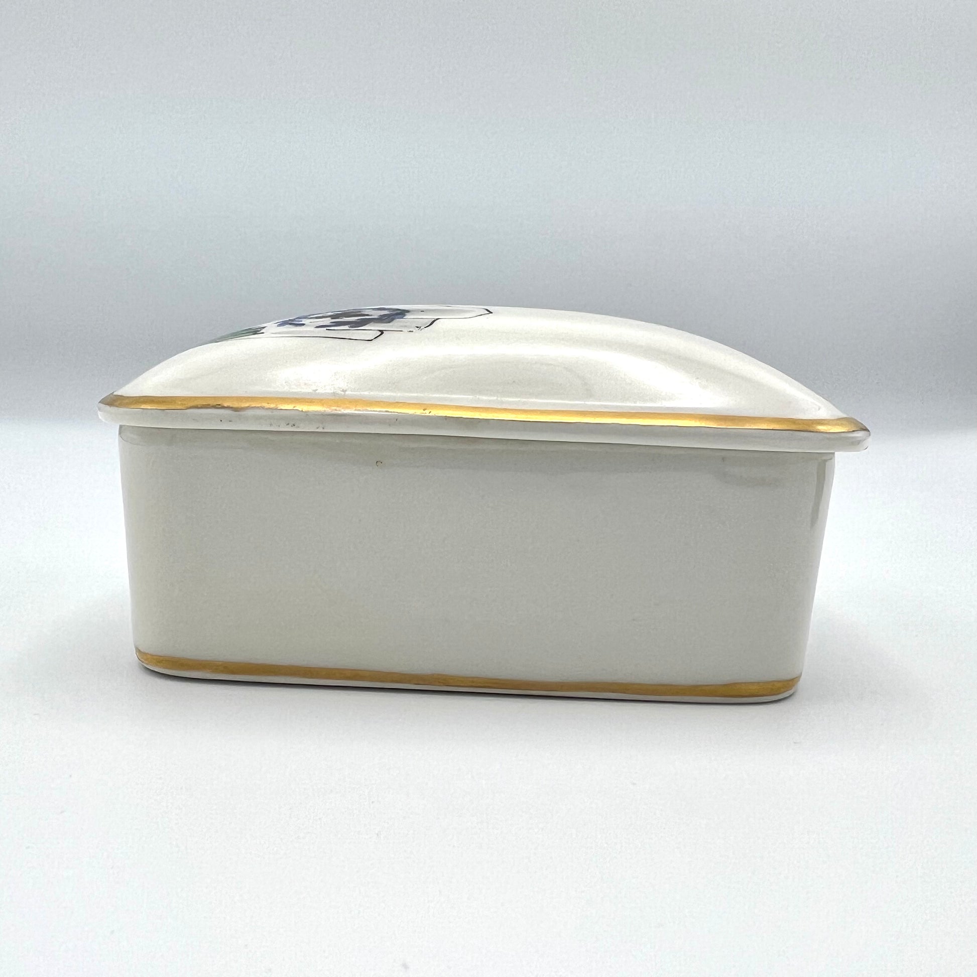 Made in porcelain this box measures 3.25” wide x 4” long by 2.25 inches tall.