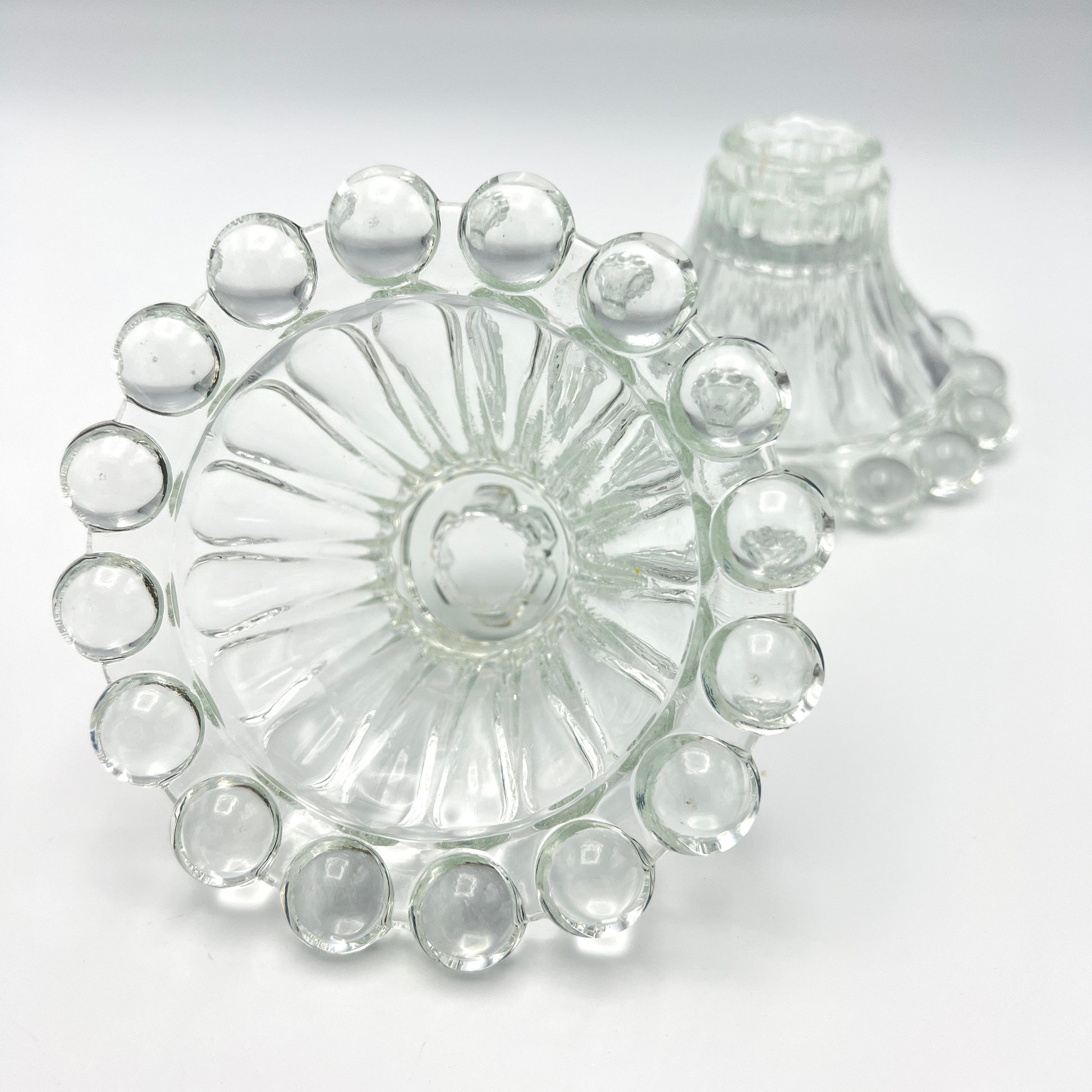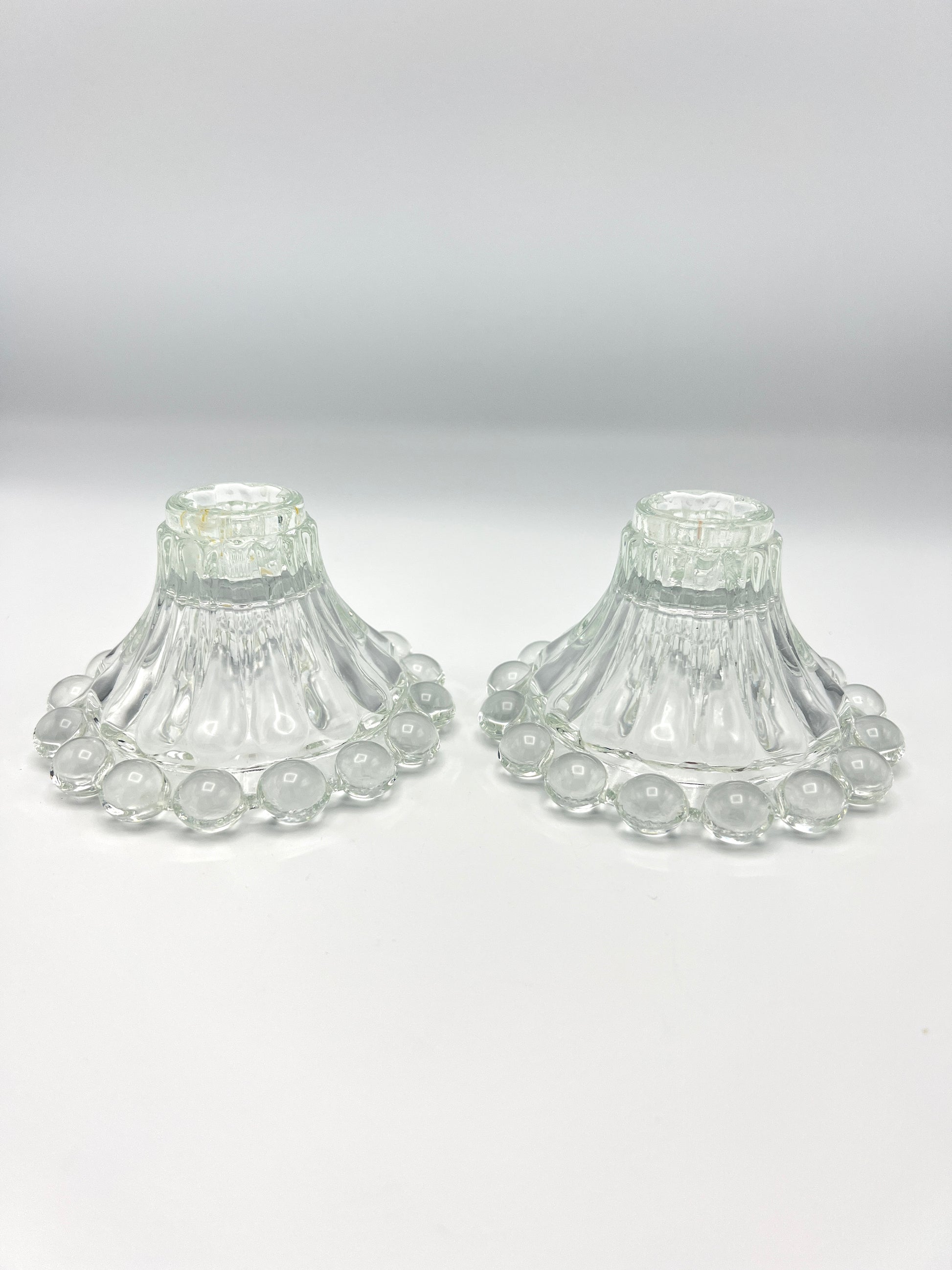 Vintage 1960s Boopie Bubble Glass Candlestick Holder Set