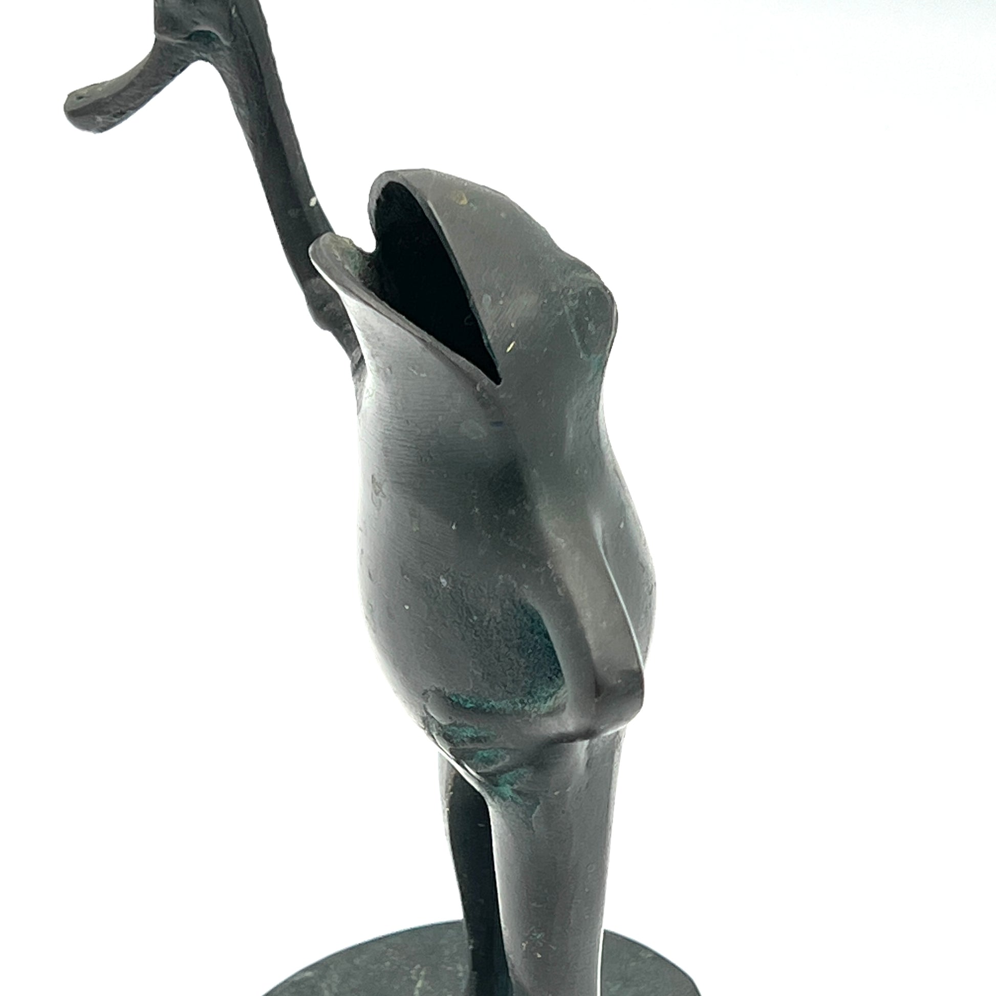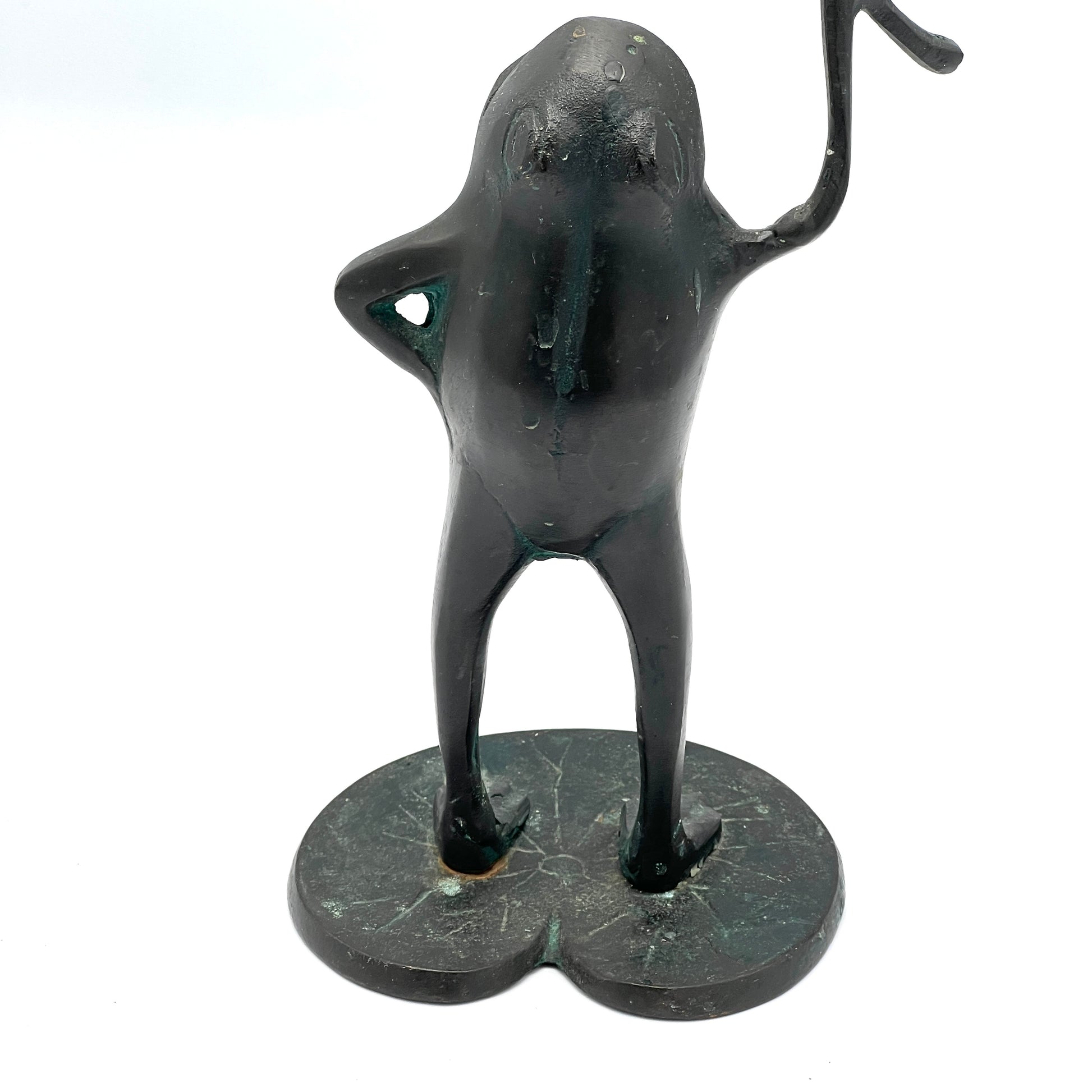 From the 1989 SPI collection, this brass frog with a green patina adds a whimsical addition to your space.